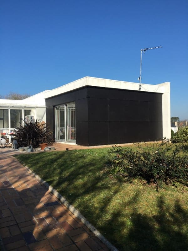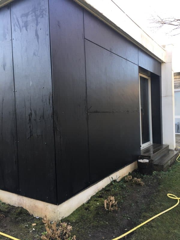 Réalisation d’une isolation thermique par l’extérieure avec revêtement en panneaux de façade.