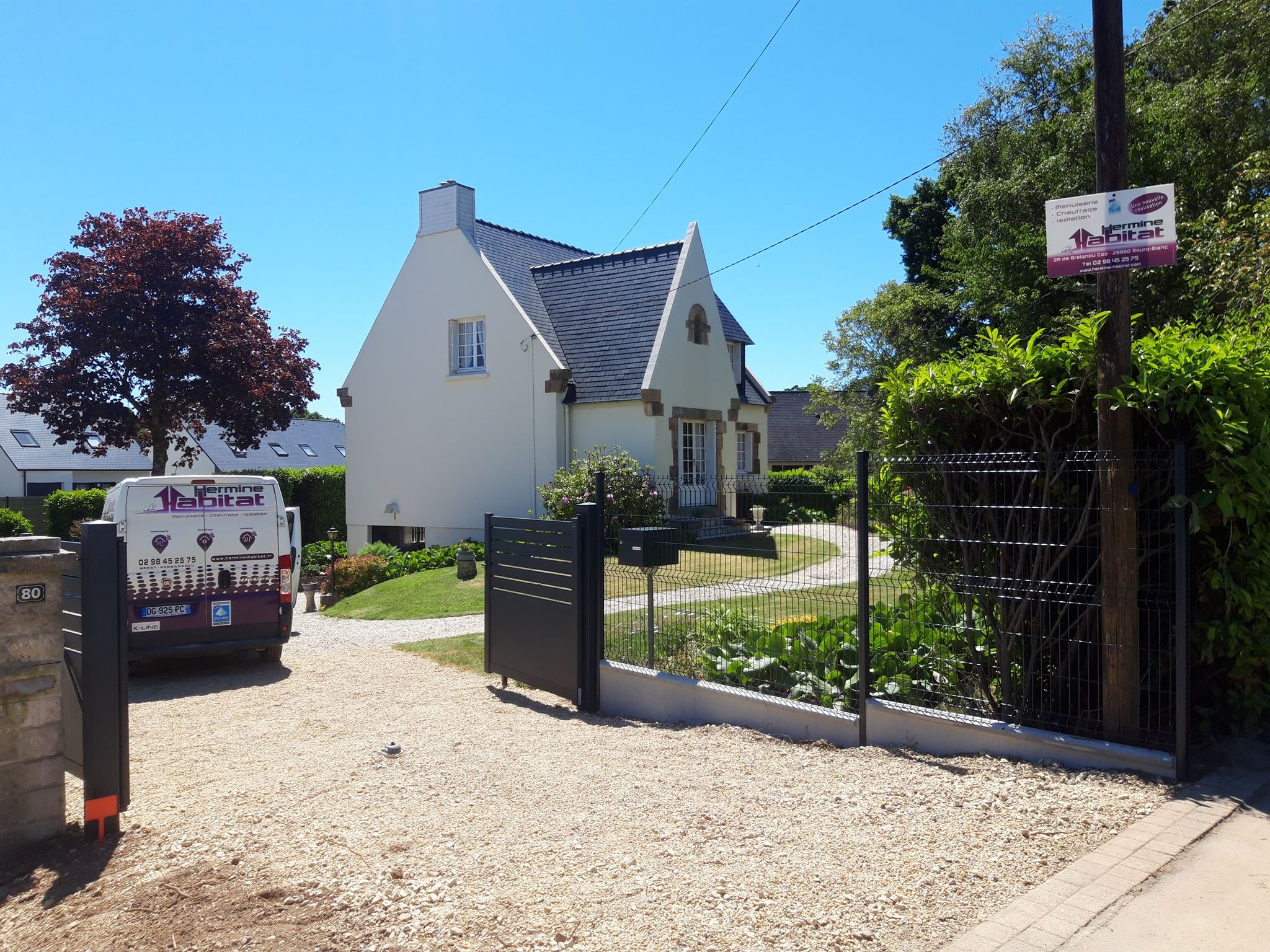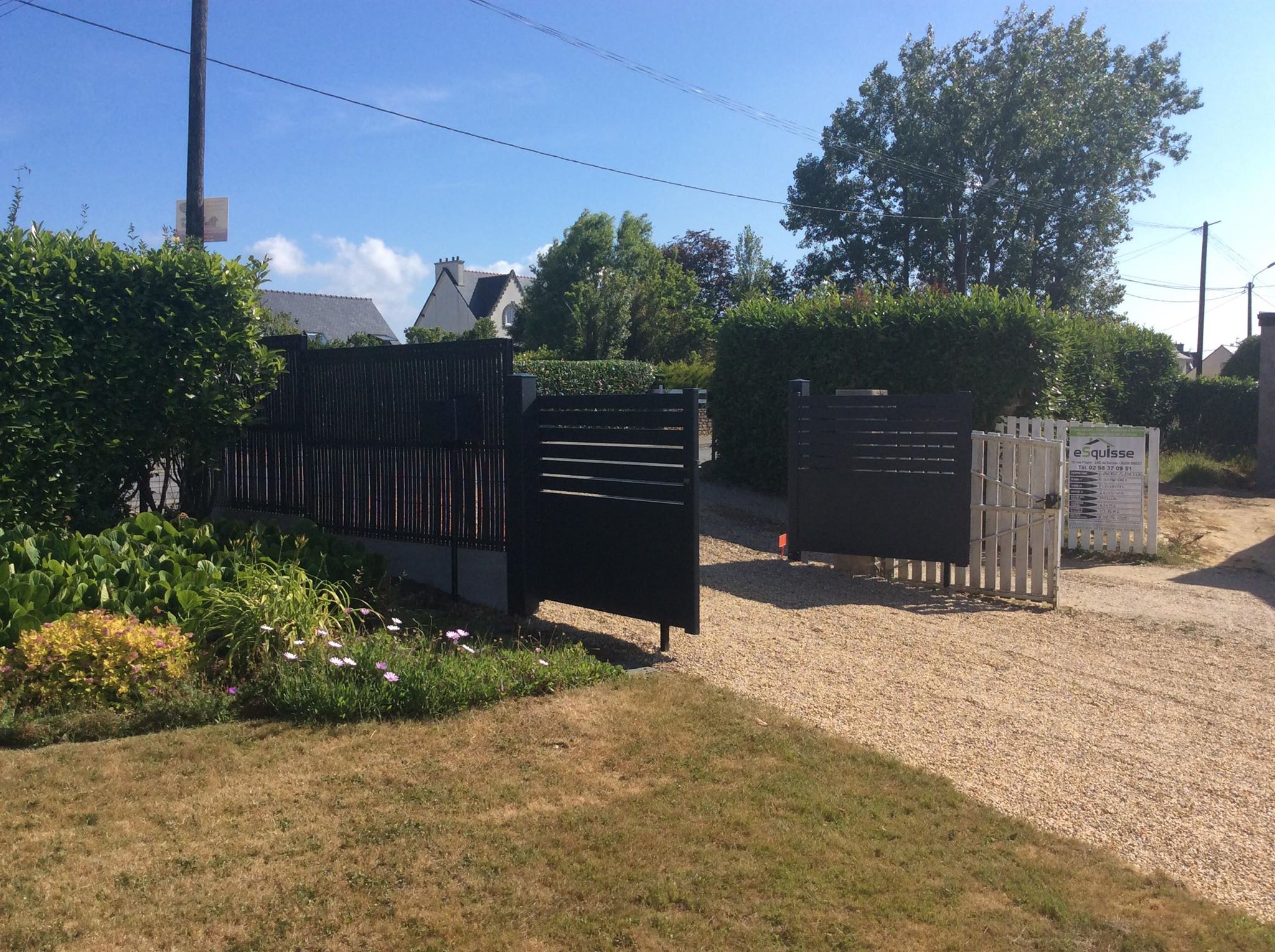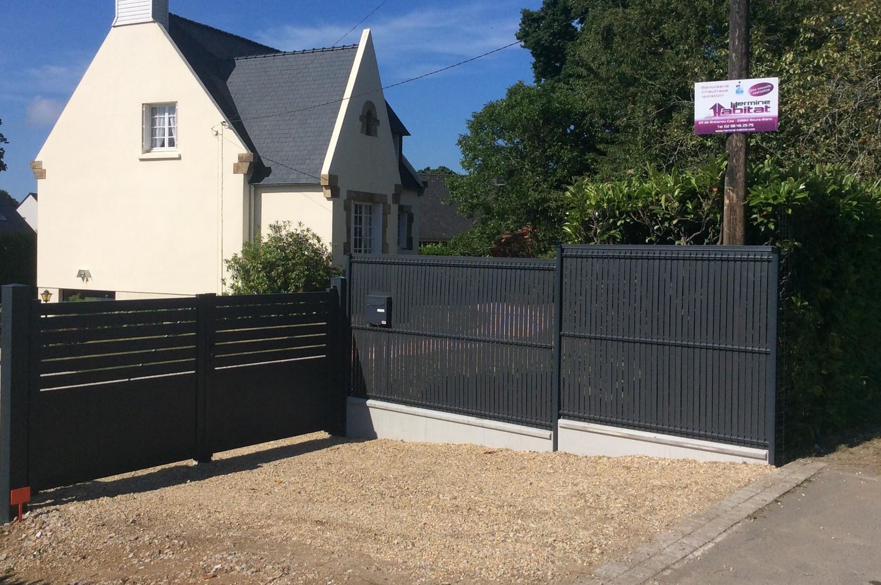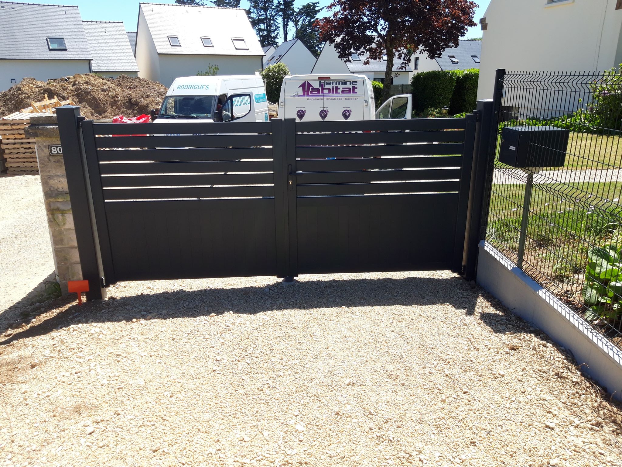 Pose d’un portail manuel sur mesure modèle « Havana » de chez Maine Cloture.