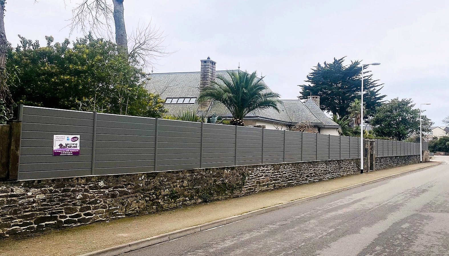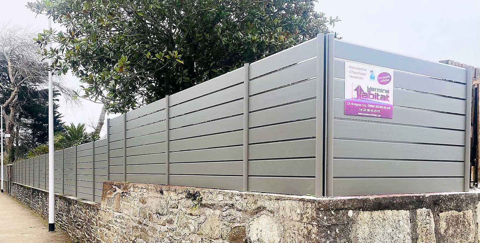 Fabrication sur mesure d’une clôture brise vent. Comme cette réalisation, vous ne trouvez pas votre bonheur dans les teintes proposées, nous sommes capable de vous laquer votre clôture à la teinte désirée !