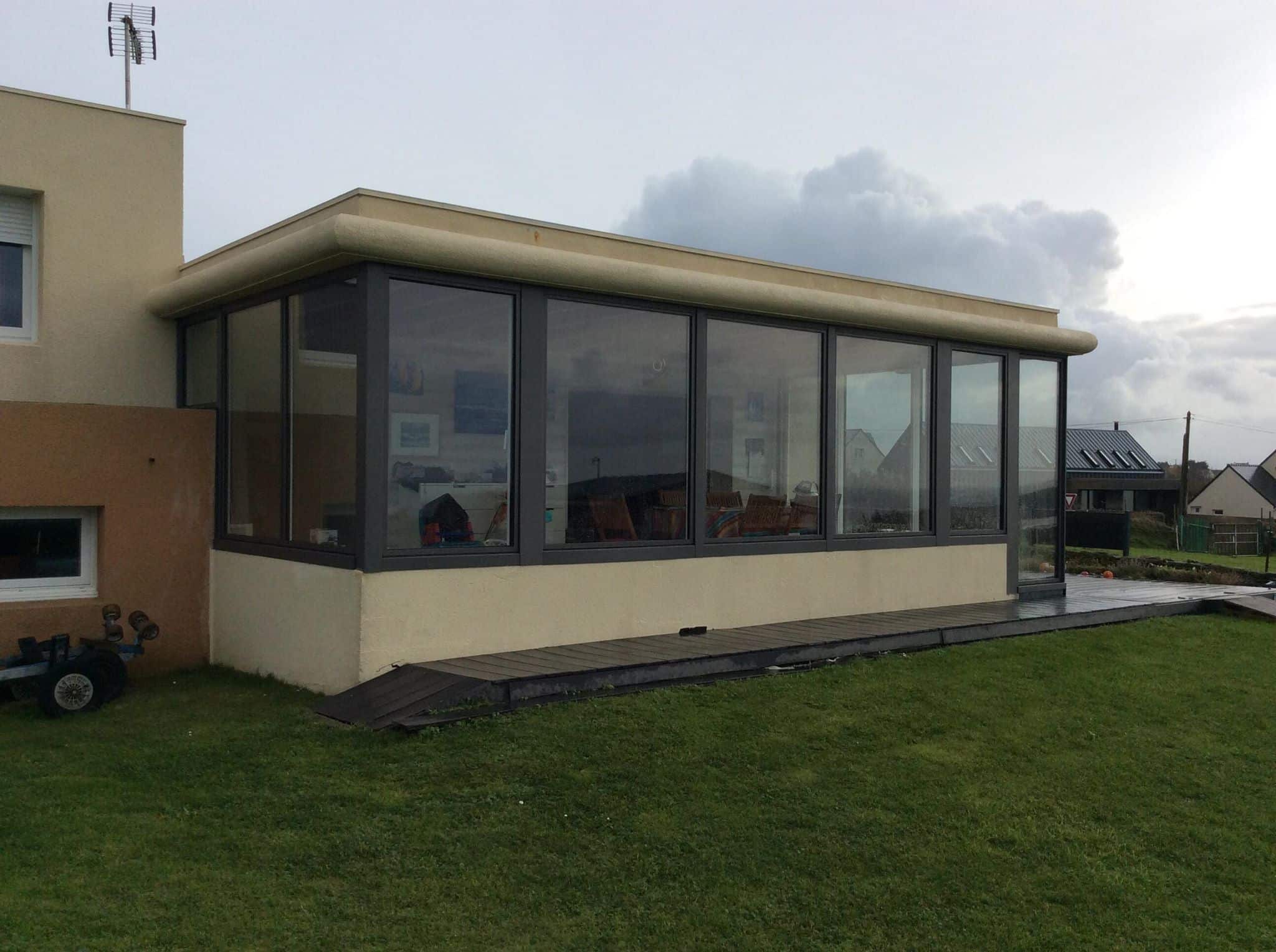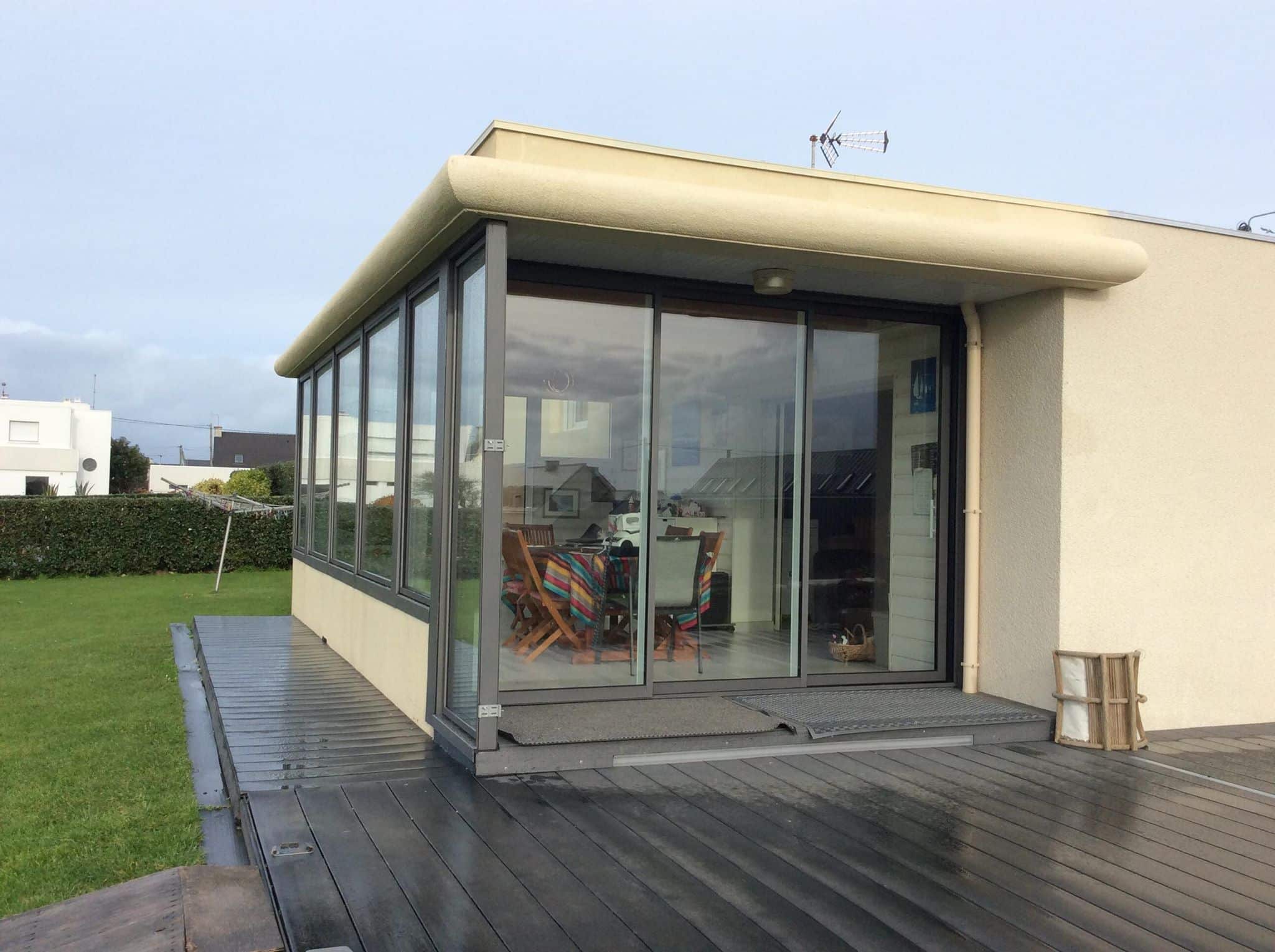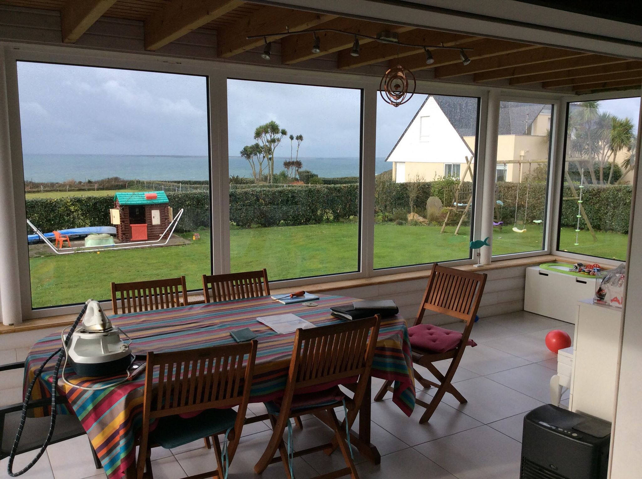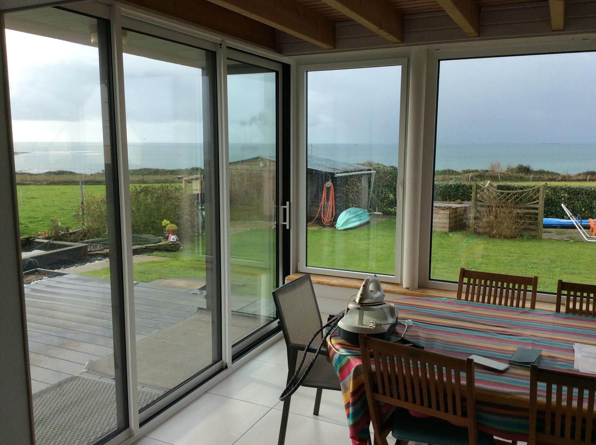 Rénovation totale sur mesure d’une extension face à la mer, composée de châssis fixes, de coulissants et de fenêtres ouvrantes à la française avec oscillo-battant.
